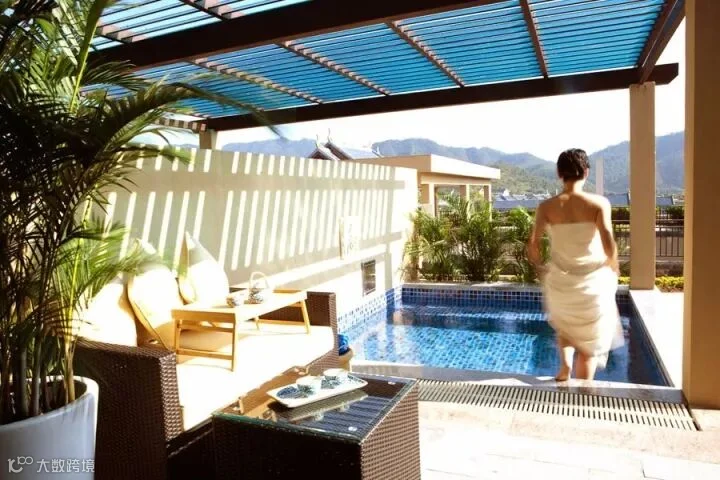 酒店的温泉池设于山顶七楼,四周绿树成荫,空气宜人。