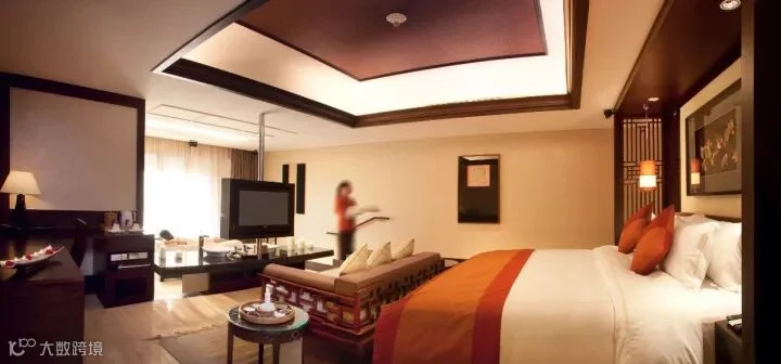 飞檐斗拱,红柱青瓦,精雕细刻,酒店在建筑外观上保留着传统的中式宫殿风格,雍容华贵,遗世而独立。