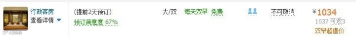 1、入住行政客房(大床/双床,尽量安排,不可指定)1间1晚;