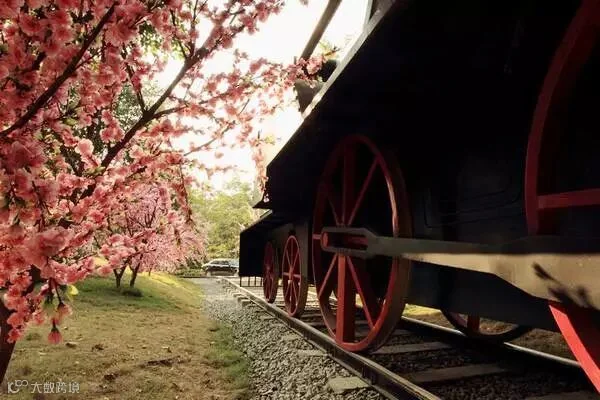 怀旧火车站的复古火车头、浪漫樱花,共同构成复古浪漫圣地。