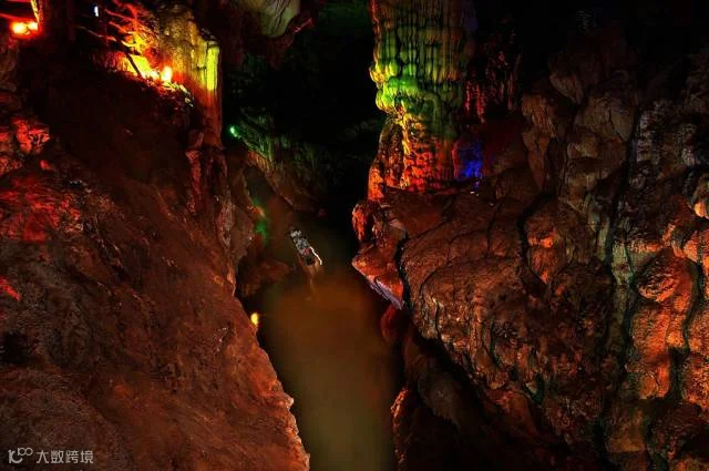 连州地下河 连州地下河位于历史文化古城连州市东北26公里处,是一个亚热带喀斯特地貌的典型巨型天然石灰岩溶洞。它以神秘、瑰丽的石钟乳及洞穴暗河而蜚声中外,有广东地下第一河之称。连州地下河的景点分陆路和水路两部分,陆路为溶洞,水路为地下河,水陆两游的连州地下河,以其恢宏的气势、壮丽的景观和独特的组合,堪称岭南一绝。著名文学家秦牧先生称之为“神秘瑰丽的地下河”。