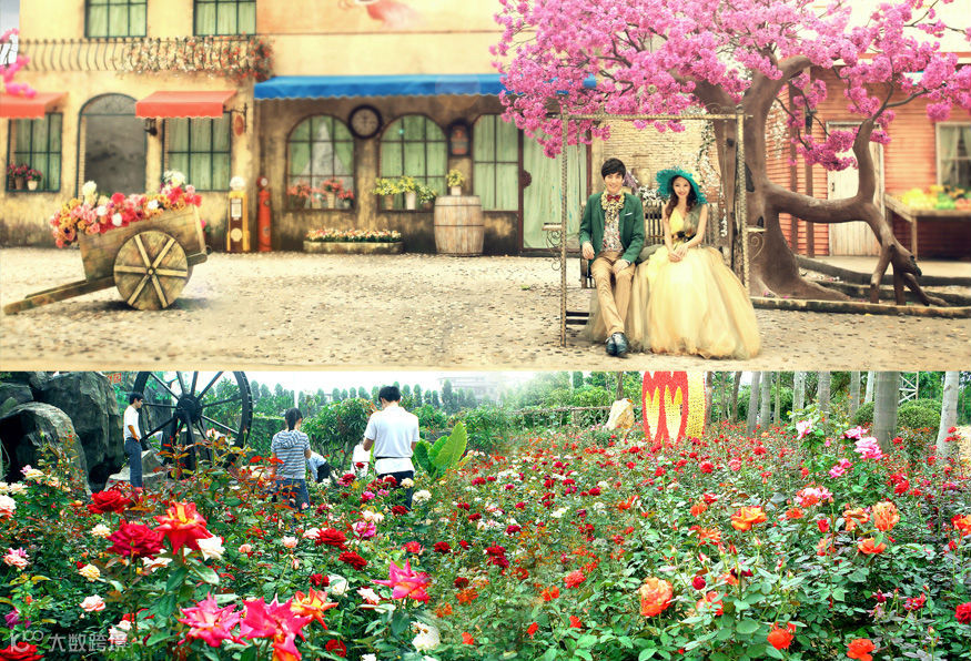 3、婚纱摄影区(蜜蜜花海、巴塞尔小镇、保格利风情小镇)及园内风光。