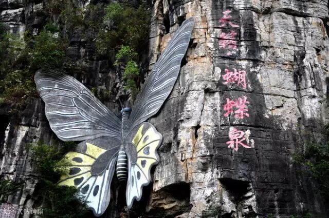 蝴蝶泉 位于桂林阳朔月亮山风景区“十里画廊”的精华旅游地段,是中国目前最大的活蝴蝶观赏地。