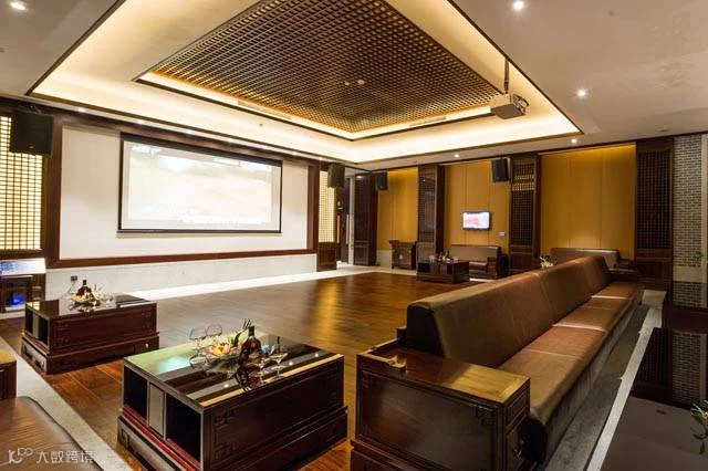 酒店大堂由全实木--进口柚木打造,采用“直上直下”的建筑风格和中国传统榫卯结构,设计独特,工艺精湛,没用一颗钉子;横梁最大跨度达13米