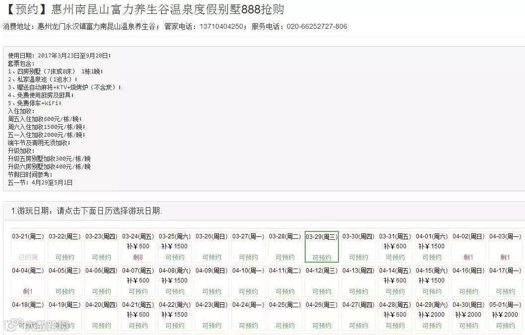 关于惠州南昆山富力养生谷温泉度假别墅888元套票抢购,