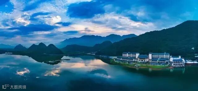 美丽的天鹅湖畔,天然峰林环抱