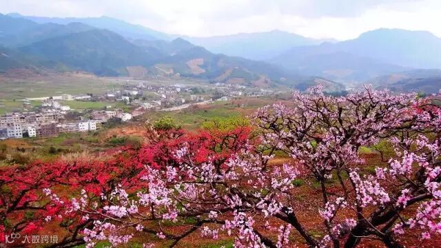 连平上坪-十里桃花 位于连平县上坪镇古坑、中村、小水村,每年2月中下旬至3月初,桃花盛开之时,漫山遍野一片绯红。并且,这片桃花海一直延伸至江西的边界,就连江西小武当山上也是处处桃花开。