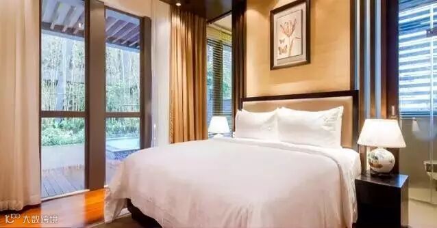 两房一厅,其中一间大床房,一间双床房,户外花园设有超大型豪华温泉泡池,尽享帝王浸浴体验。