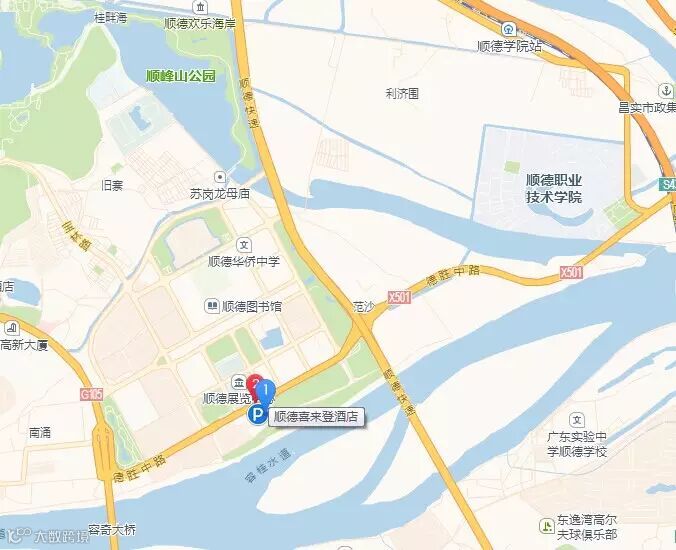 顺峰山公园 位于酒店的正对面,是顺德“新十景”之一。公园的建设突出以“山色水韵”为主题,依据山势地貌形成了“青山、碧水、一寺、两湖、两塔”的自然与人文景观格局,共24个景区。