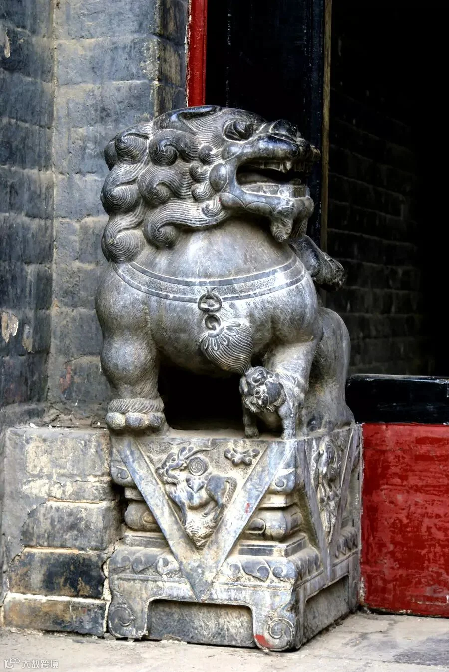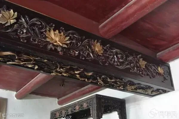 雕花门楼,上面木雕的狮子舞绣球很精致