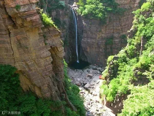 原来是一条峡谷,长326米,最宽处31米,最深处62米。峡谷底红石岩层清晰,多级瀑布,水潭连接,水击石壁,声如雷鸣龙吟,被喊作龙吟峡。1975年,郭亮人从山下抬沙子,背水泥,攀爬天梯,在此筑坝修成水库。坝高39米,蓄水量19万立方米。成为郭亮一景,被称为天池。