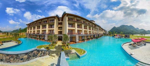 湖畔无边际泳池仿佛与天鹅湖融为一体