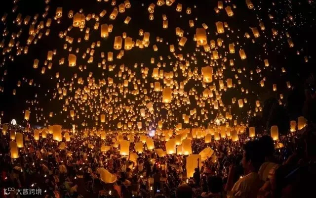 在沙滩齐放的孔明灯,落日与阳光交融