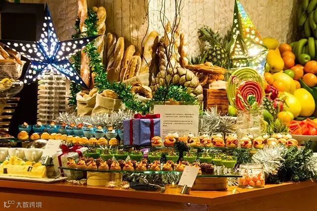 自助餐区到处洋溢着圣诞的气氛