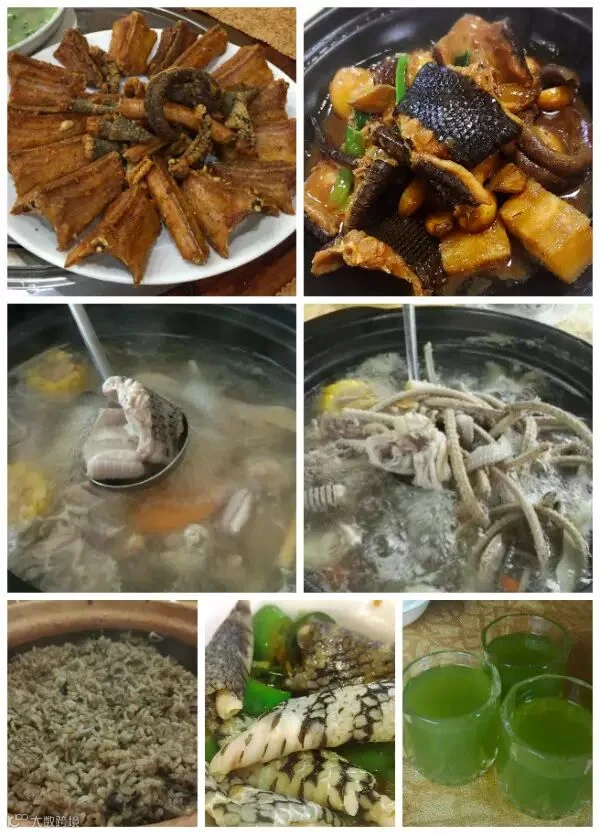 椒盐蛇碌、美极蛇段、蛇血炒饭