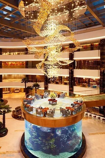 一进大堂就可以观看水族馆
