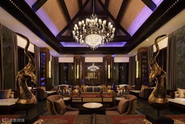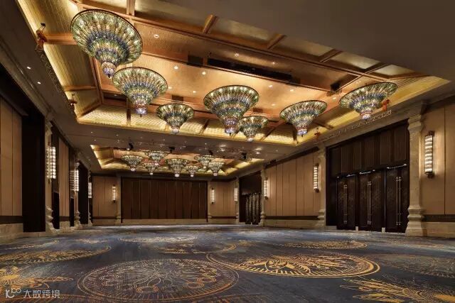 奢华典雅的宴会厅中配以孔雀开屏水晶吊灯,带给每一位顾客美好吉祥。厚重低调傣式的大理石门套赋予空间特殊感,彰显气质内涵和当地特色。