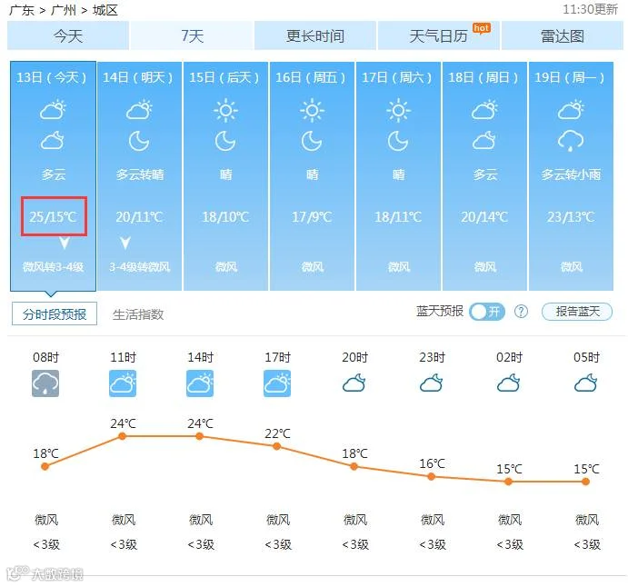 看看广州今天最高气温在25℃左右