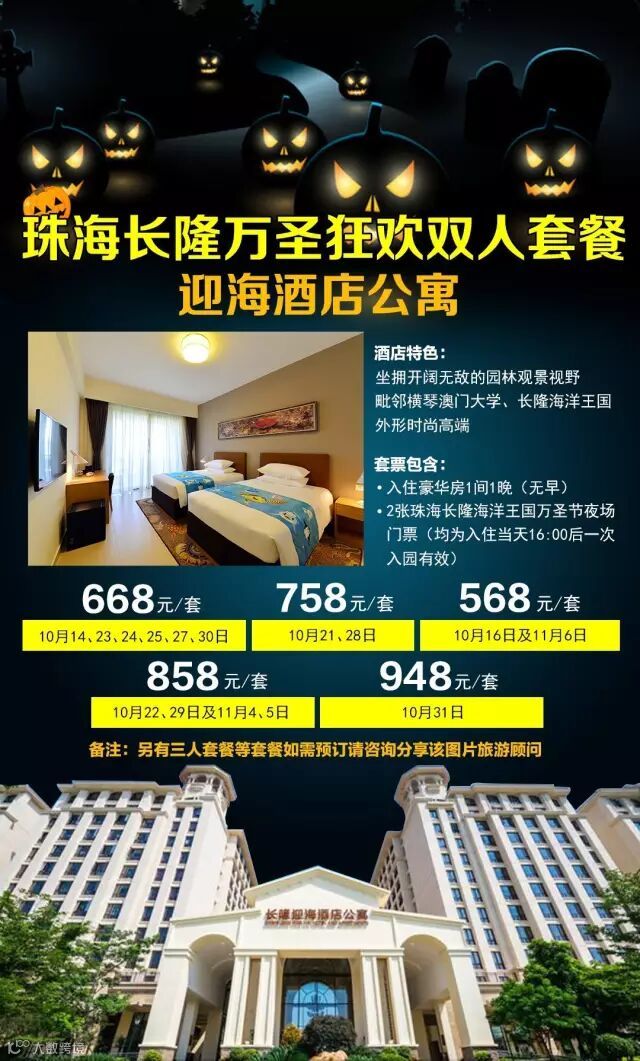 2、凡预订以上套票,如需增加第三人或第四人购买海洋王国夜场门票享优惠(每房最多只能增加至第四位);