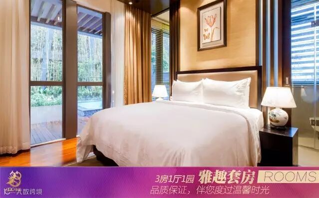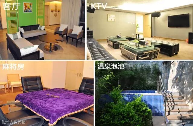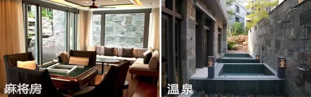 均为三房一厅,其中两间大床房,一间双床房,有自动麻将机,户外花园设有超大型豪华温泉泡池,尽享帝王浸浴体验。