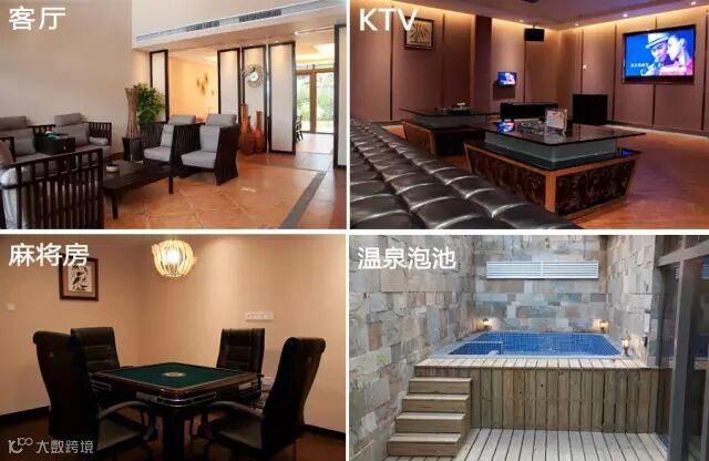 独栋六房。别墅分别呈现现代简约风格、东南亚风格及富有殖民地色彩的越式风格。还配有KTV、麻将房、温泉泡池等康乐设施。