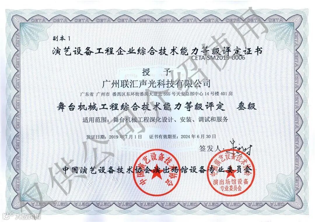 中国演艺设备技术协会舞台机械工程综合技术能力等级资质三级