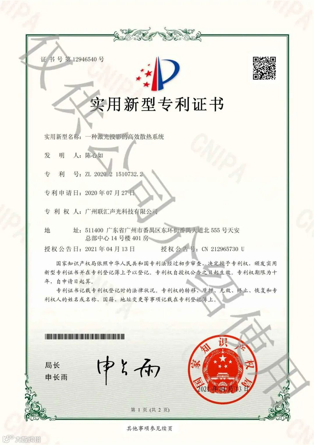 专利证书