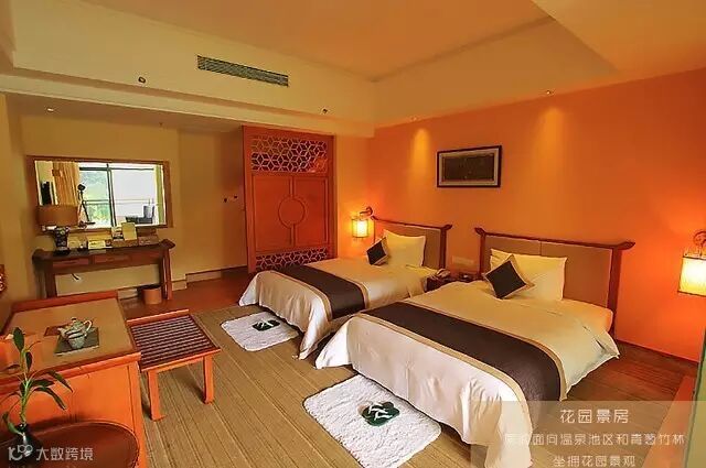 面向温泉池区和青葱竹林,坐拥花园景观