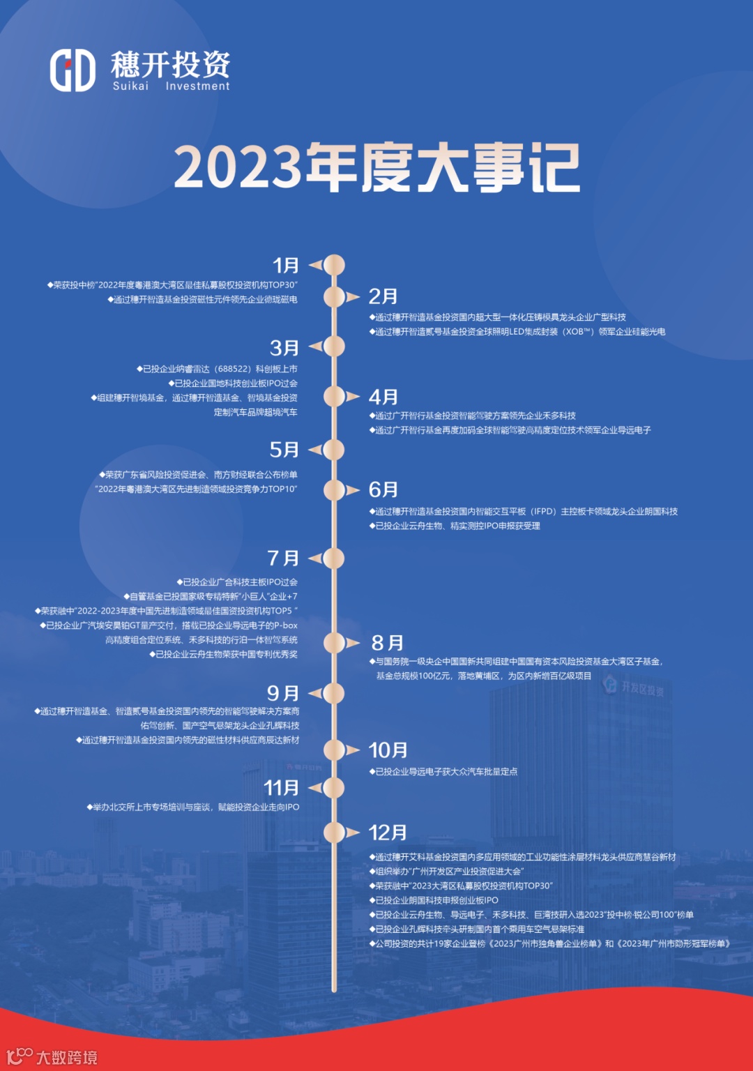 广州穗开股权投资有限公司,成立于2017年12月,为广州开发区投资集团有限公司旗下全资私募基金子公司,注册资本为12.5亿元,是集团旗下定位于重大产业投资和资本化运作的专业化子公司,拥有私募基金管理人牌照,编号为P1069733。公司作为专业化、市场化运作的私募基金管理人,依托广州开发区投资集团在科技产业园区、重大产业投资、券商银行保险等金融股权战略布局的强势资源,深耕广州开发区,挖掘、投资和赋能了鹿山新材(603051)、纳睿雷达(688522)、广钢气体(688548)、国地科技、广合科技、云舟生物、精实测控、超境汽车、导远电子、孔辉科技、佑驾创新、禾多科技、立景创新、芯德科技、方瞳科技、广型科技、巨湾技研、硅能光电、派勒科技、德珑磁电、奇芯光电、朗国科技、中设机器人、广芯微电子、斯洛柯、辰达新材、慧谷新材、嵩达新材等多个独角兽和明星企业,致力于打造根植广州开发区 黄埔区、服务粤港澳大湾区战略新兴产业发展,具有鲜明本地化特色和深厚产业优势的精品国有产业投资机构。