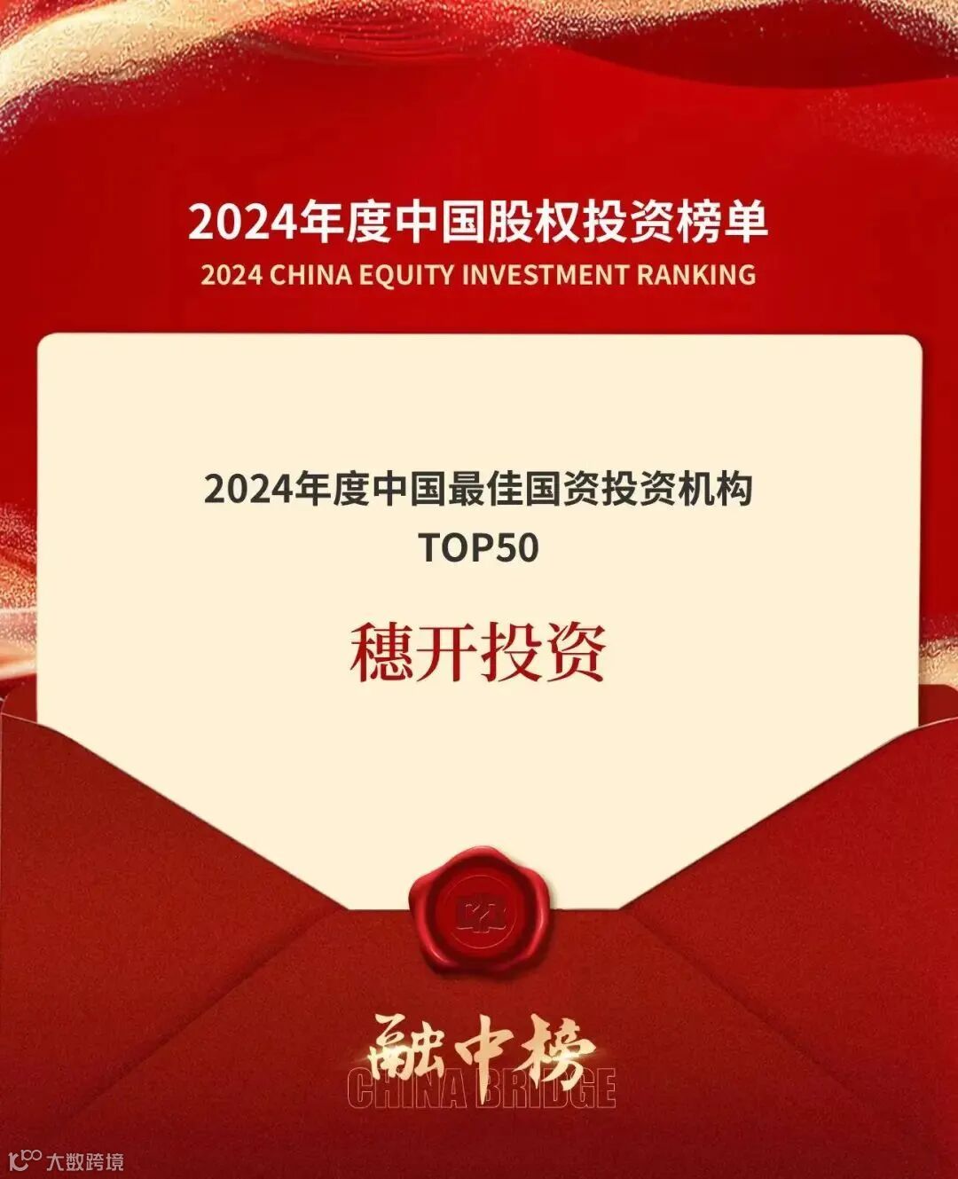 穗开投资连获三奖,分别为“融中2024年度中国私募股权投资机构 TOP100” “2024年度中国最佳投后管理私募股权投资机构TOP10”和“2024年度中国最佳国资投资机构TOP50”。