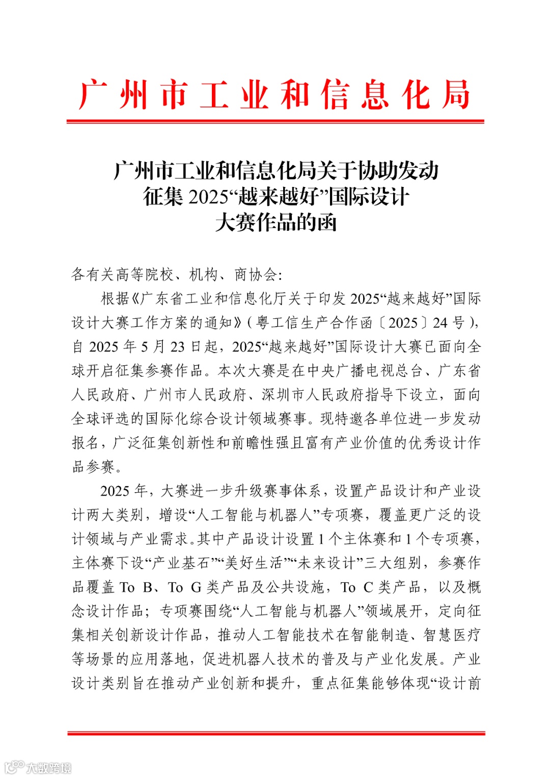 2025“越来越好”国际设计大赛由中央广播电视总台、广东省人民政府、广州市人民政府、深圳市人民政府联合指导,是一项面向全球的综合性国际设计赛事,聚焦创新设计与产业融合。