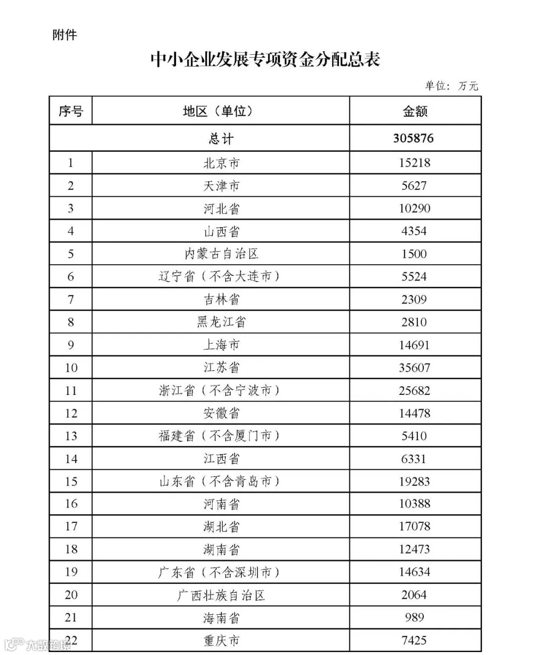 根据《中小企业发展专项资金管理办法》(财建〔2021〕148号)、《财政部 工业和信息化部关于进一步支持专精特新中小企业高质量发展的通知》(财建〔2024〕148号)、《工业和信息化部办公厅 财政部办公厅关于开展财政支持中小企业数字化转型试点工作的通知》(工信厅联企业〔2022〕22号)等相关文件规定,现下达各地2024年中小企业发展专项资金预算,用于新一轮第一批重点“小巨人”企业实施期初奖补、中小企业数字化转型公共服务平台奖补资金清算,具体额度见附件。支出列2024年政府收支分类科目:215资源勘探工业信息等支出,项目名称:中小企业发展专项资金,项目代码:10000014Z145110010027。