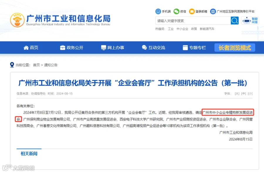 导读:8月15日,广州市工业和信息化局公告关于开展“企业会客厅”工作承担机构(第一批)名单。