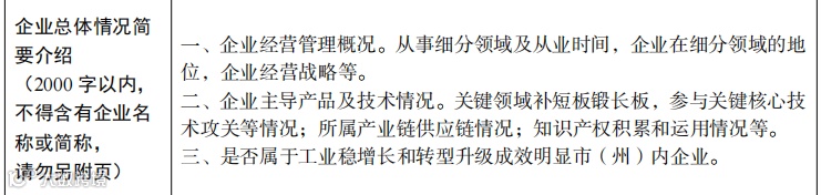 7.关于“企业总体情况简要介绍”,强调“不得出现企业名称或简介”