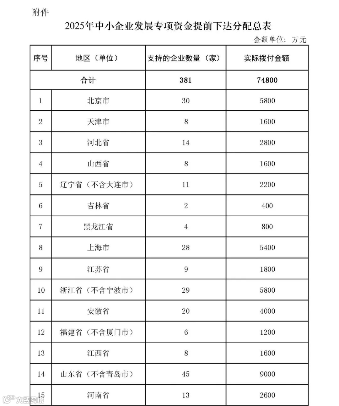 附件:2025年中小企业发展专项资金提前下达分配总表