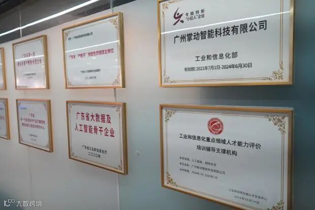 走进掌动智能在广州天河的办公室,你会看到两面墙,这些专利和荣誉,刻画的是一个又一个鼓舞人心的故事。有的讲述了企业如何在激烈的市场竞争中稳扎稳打,坚持做对行业和社会有价值的事;有的则描绘了面对技术难题时,团队成员如何齐心协力,凭借创新技术攻克难关。