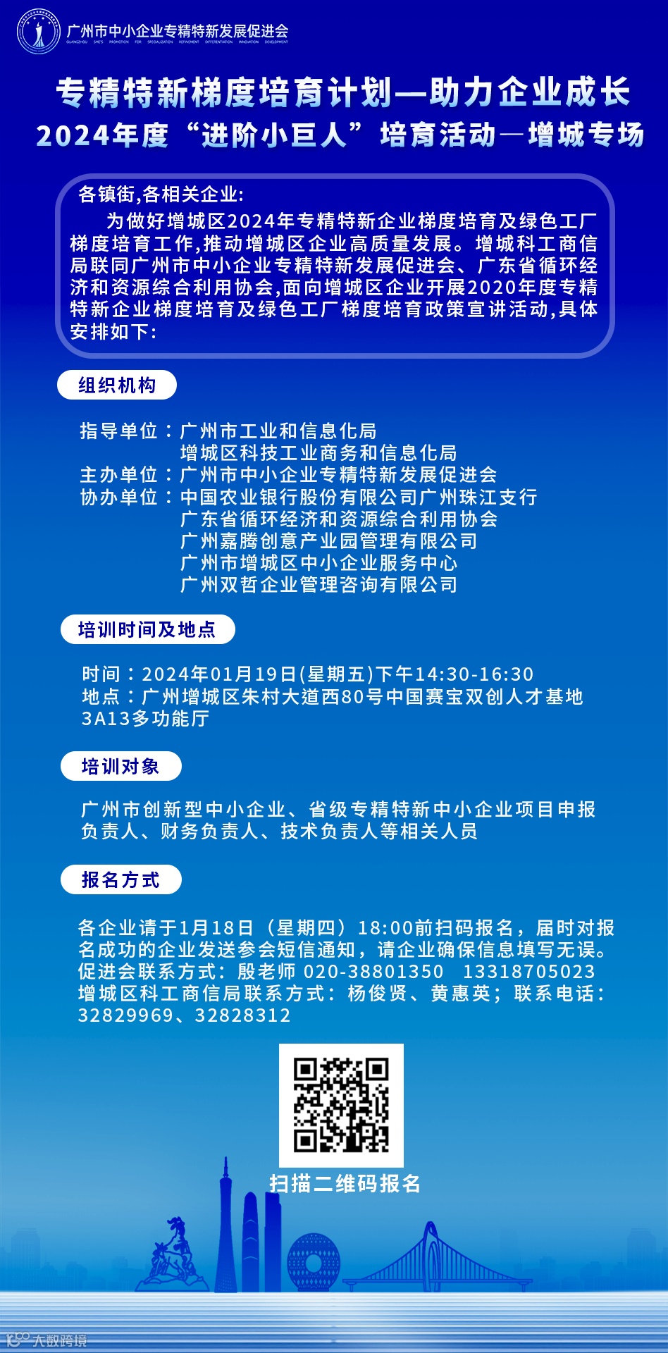 各企业请于1月18日(星期四)18:00前扫码报名,届时对报名成功的企业发送参会短信通知,请企业确保信息填写无误。