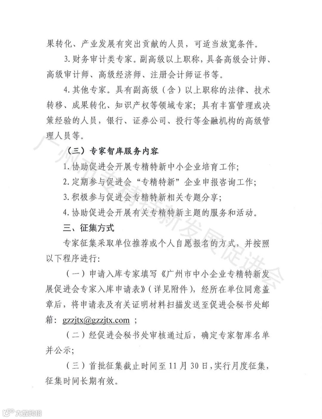 关于征集广州市中小企业专精特新发展促进会专家智库入库的通知