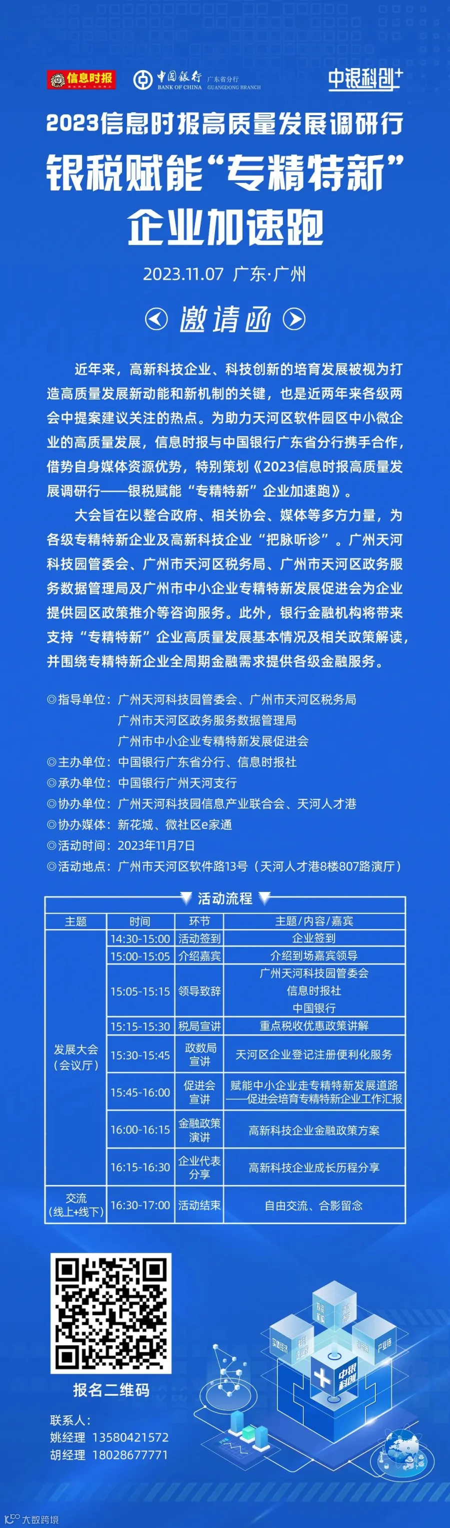 银税赋能专精特新企业加速跑”专题活动报名通知