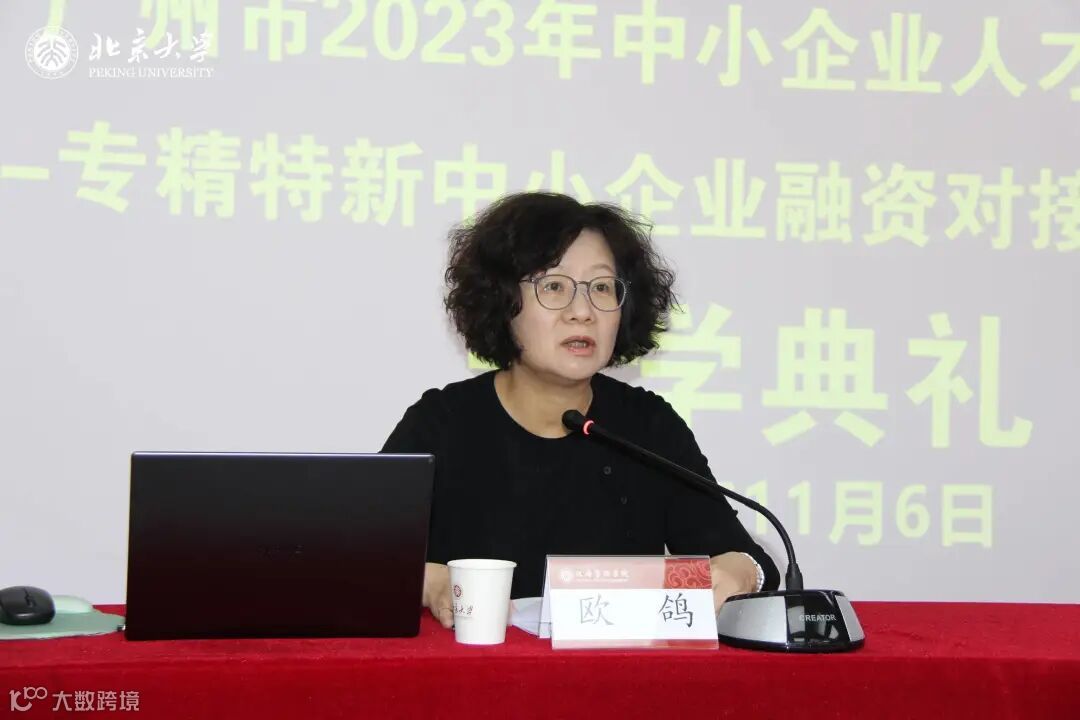 11月6日上午,广州市工业和信息化局党组副书记、副局长欧鸽,广州工业和信息化局中小企业处处长申永红,北京大学政府管理学院党委副书记刘明乾出席开班典礼。刘明乾书记致欢迎辞,表达了对研修班学员的诚挚欢迎,期盼学员通过此次研修班学有所得。欧鸽书记在致辞中表示,希望学员珍惜学习机会,端正学习态度,树立终身学习理念。