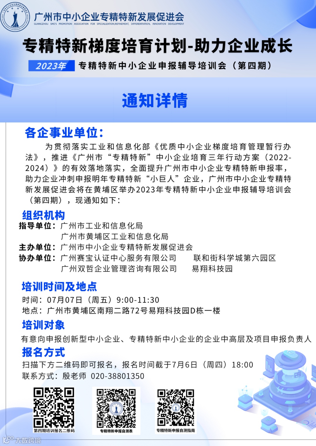 活动报名 | “专精特新梯度培育计划-助力企业成长”2023年专精特新中小企业申报辅导培训会(第四期)