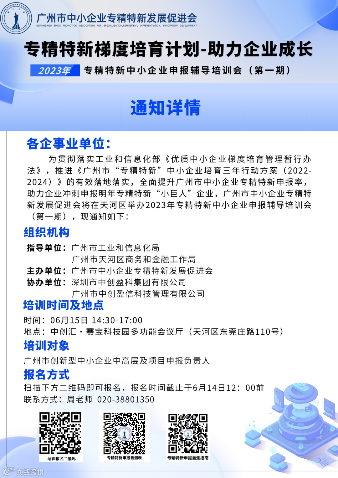 活动报名 | “专精特新梯度培育计划-助力企业成长”2023年专精特新中小企业申报辅导培训会(第一期)