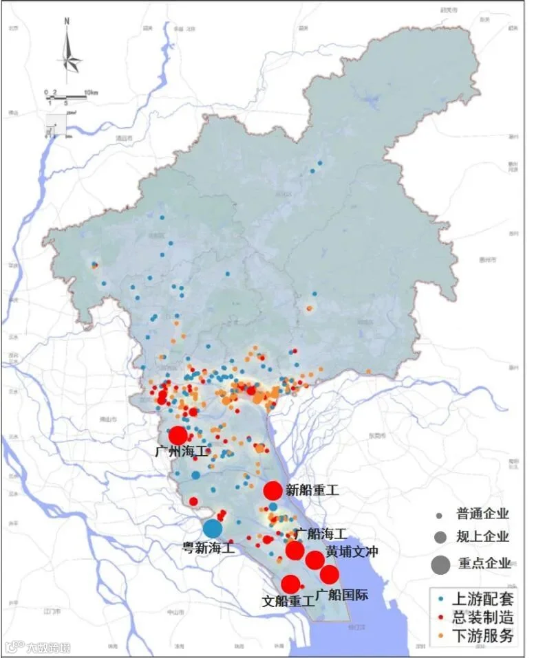 广州船舶海工装备产业链各环节分布图