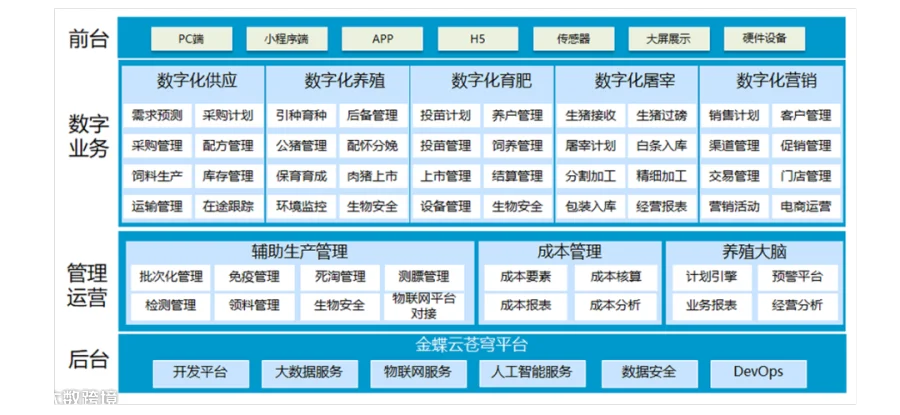 两个平台以数字技术为基础,为农牧企业提供数字化、智能化、无人化养殖及全产业链解决方案和产品服务,实现从繁育到销售全链条成本控制,助力农牧企业实现成本领先。