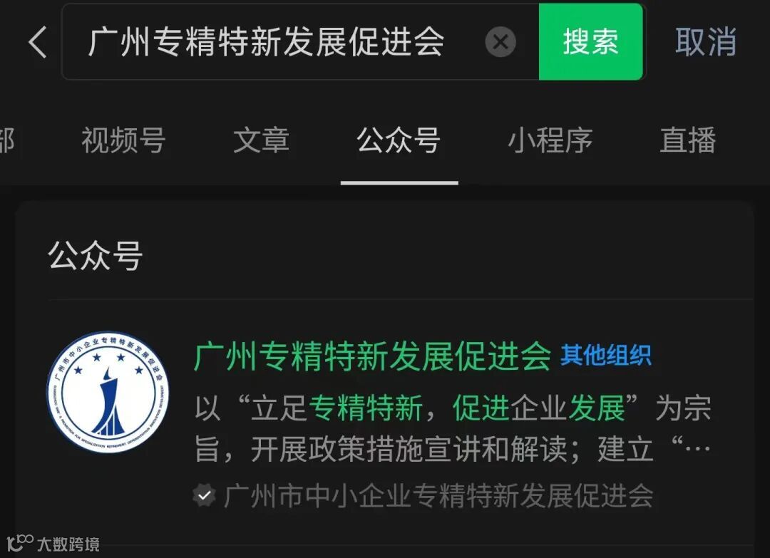 1.打开微信,搜索“广州专精特新发展促进会”,关注公众号;