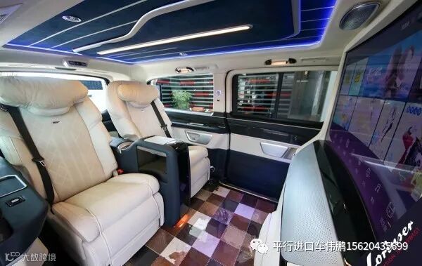 奔驰V250在内部装潢上也进行升级,车体提供真皮、Alcantara以及木材和碳纤维多种材质可供选择。而MPV车型看中的合金踏板、合金门把手以及内装台板等这款车都有所配备。科技配置还有AppleTV、两个独立15.6英寸显示屏、蓝光播放器以及DVB-T信号接收系统等。