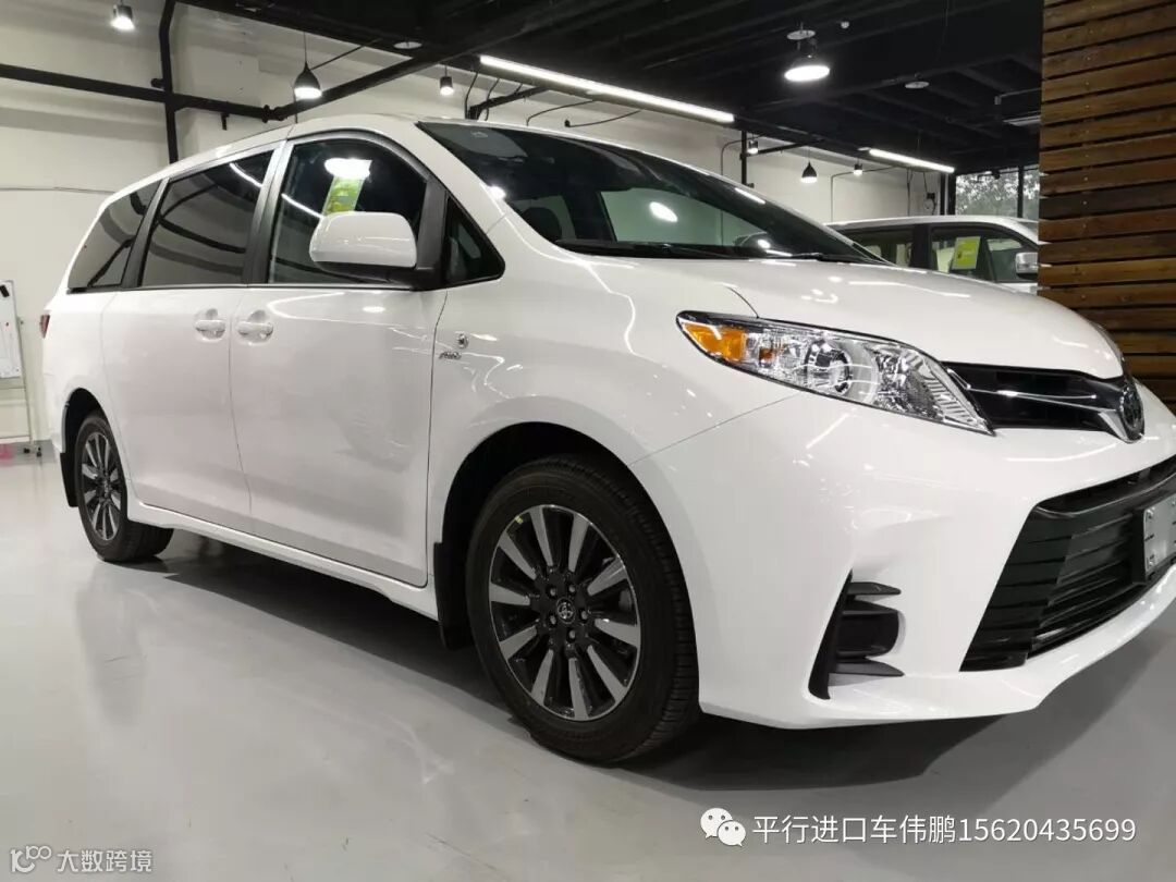 19款加版塞纳四驱LE配置:手机智能互联 雷达测距 并道辅助 远近光辅助,行人辅助,7座,8速变速箱,多功能助力方向盘,双电动门,侧遮阳帘,倒车影像、行李架、主驾驶电动,巡航定速、三区空调、六扬声器、隐私玻璃,儿童锁,电子指南针,前排中央扶手,18轮普利司通防爆胎。