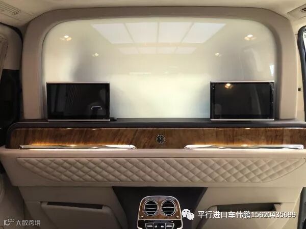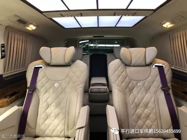 2019奔驰V250 (迈巴赫包围 隔屏版) 长*宽*高5370*1905*1920 轴距3408 排量/ml 1905 油箱容积/L 80 最高车速: 182 变速箱: 7速自动 发动机:汽油涡轮增压 车辆配置 原厂三方控制双侧电动门带防夹功能 电动尾门可双开 高效能舒适底盘 高位刹车灯 电动调节车外后视镜 后视镜加热除雾 电动翻盖后视摄像头 巡航定速 换挡拨片 迈巴赫锻造19寸轮毂 整车意大利进口Alcantara麂皮绒、真皮包覆 主副驾驶打孔真皮座椅 主副驾驶电动腰部支撑 压缩制冷冰箱 多功能可舒适调节方向盘 奔驰家族御用设计中控操作台支持蓝牙连接语音通话 带随动转向倒影和前后雷达 LED氙气流水灯 220V电源 迈巴赫LED迎宾踏板灯 热感屏控制器 进口胡桃木钢琴漆方向盘及内饰组件 前舱出风口镀铬组件 隐私玻璃和风挡玻璃加热除雾及防紫外线功能 后侧蝴蝶窗电动开启 意大利Alcantara麂皮绒棚顶 一键升降式雾化玻璃私密隔屏 后舱双独立娱乐系统 后舱独立空调控制器 高档弹力窗帘 车载奔驰专用钟表 吧台文件储物夹 车身侧壁USB接口 迈巴赫外观套件 航空铝弧形顶灯 化妆镜 迈巴赫后排座椅带按摩 通风 加热 腰部支撑 腿部支撑 二级伸展腿拖 飞机翼头枕 第三排座椅可水平放倒带加热 第三排座椅后舱储物抽屉 欧洲进口长绒地毯。