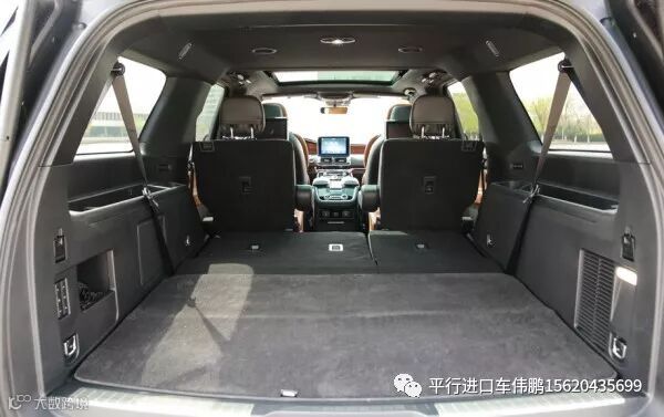新款领航员,设计师好像从一开始就不担心它的空间。座椅采用2+2+3的布局,可以随意折叠调配,二三排折叠,立刻变身货车,车内空间扩升至2926升。领航员的第三排空间比很多7座MPV还要好。身高1.85米的体验者坐到第三排,无论头部还是腿部都有富余的空间。不过,遗憾的是第二排座椅并不能前后移动,所以第三排的腿部空间拓展性差一些。另外,领航员第三排座椅可以在行李厢进行电动放倒和立起来,方便了有大体积行李时的装载。电动尾门的按键在左侧,而非尾门上,这会让刚接触的人有些不知所措。