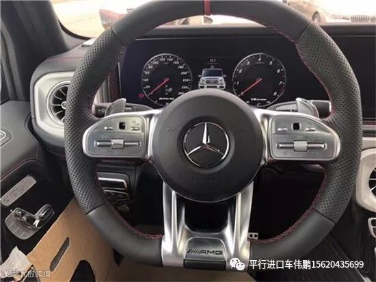 【配置】:9速AMG变速箱,AMG独家黑红双拼内饰,干椒红碳纤维饰件,红色安全带,可调阻尼底盘,主动车道保持,主动刹车辅助,AMG红色卡钳 ,雷达测距,柏林之声3D音响,电动天窗,风挡玻璃加热,超细纤维内饰(鹿皮顶),64色氛围灯,360环影,停车辅助(中规智选套装,选装加24200),几何多光束LED大灯(中规G63选装加19000元),AMG暗夜包,增强座椅舒适包(多轮廓座椅,通风按摩),AMG高性能Nappa真皮方向盘,AMG驾驶包时速240公里更加运动和灵活的驾驶体验(底盘更运动 更灵活最高时速更高,中规无法选配)